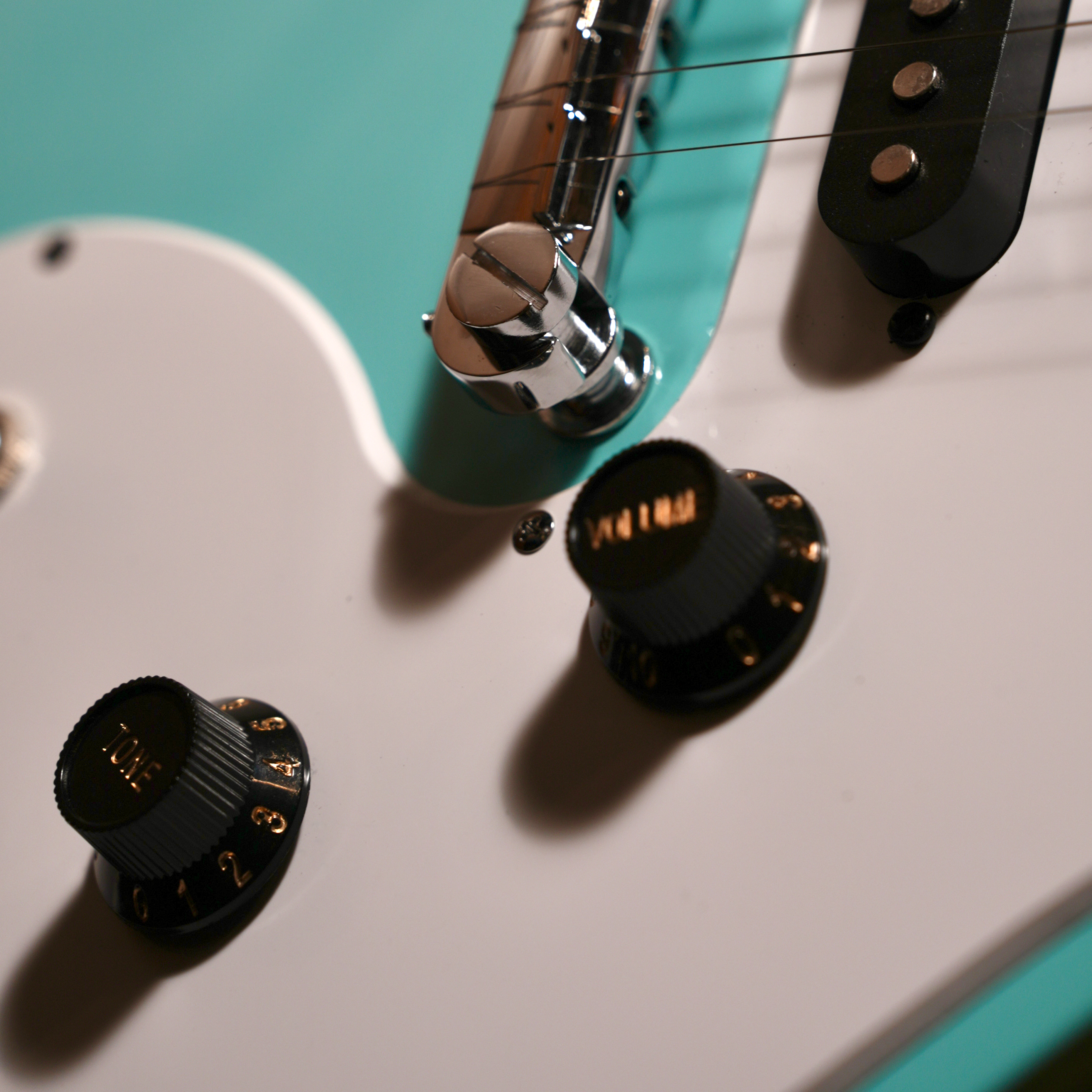 輕量化楊木琴身 (Poplar Body): 它採用了纖薄輕巧的楊木製作,背起來毫無壓力。這意味著你可以站著練習更久,而不會感到肩膀痠痛。