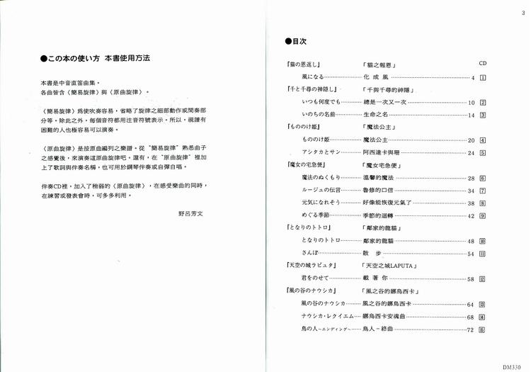 本書是中音直笛曲集。各曲皆含〈簡易旋律〉與〈原曲旋律〉。