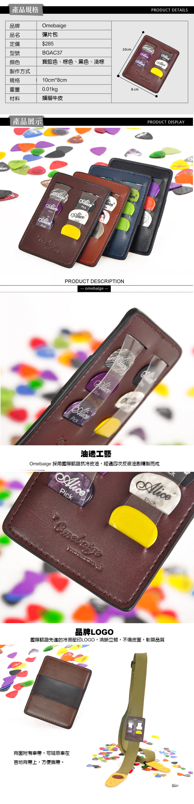 Omebaige BGAC37 高級 彈片 PICK 夾 可裝6片彈片 進口小羊皮
