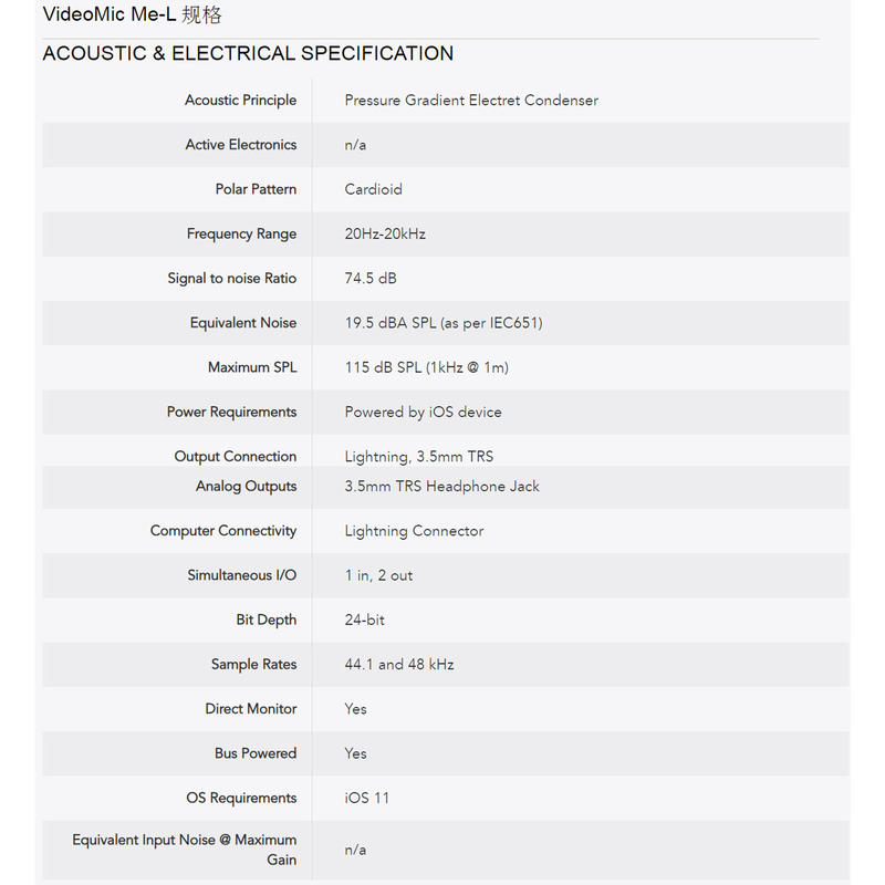 VideoMic Me-L與所有帶有Lightning端口且運行iOS 11或更高版本的Apple iOS設備兼容。