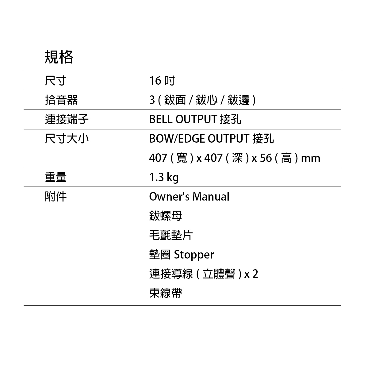 *CY-16R-T拾音器參數,目前僅適用於TD-27鼓音源機。