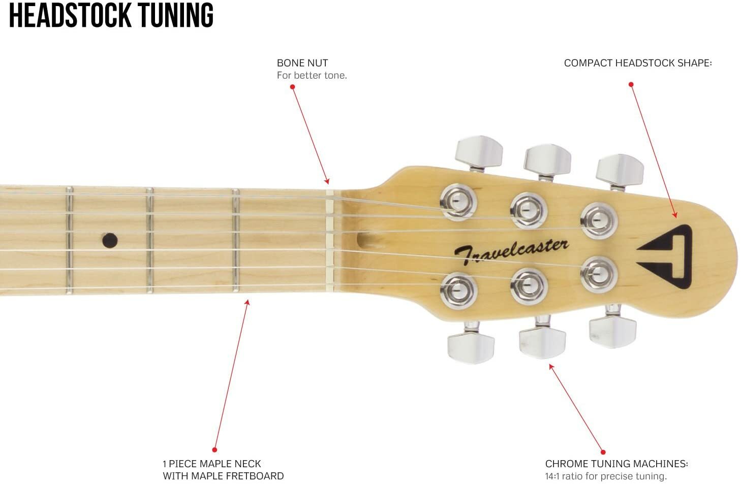 ‧Travelcaster 配備了一個完全可調的顫音琴橋和彎曲的鋼鞍座,以提高顫音響應和調音穩定性。