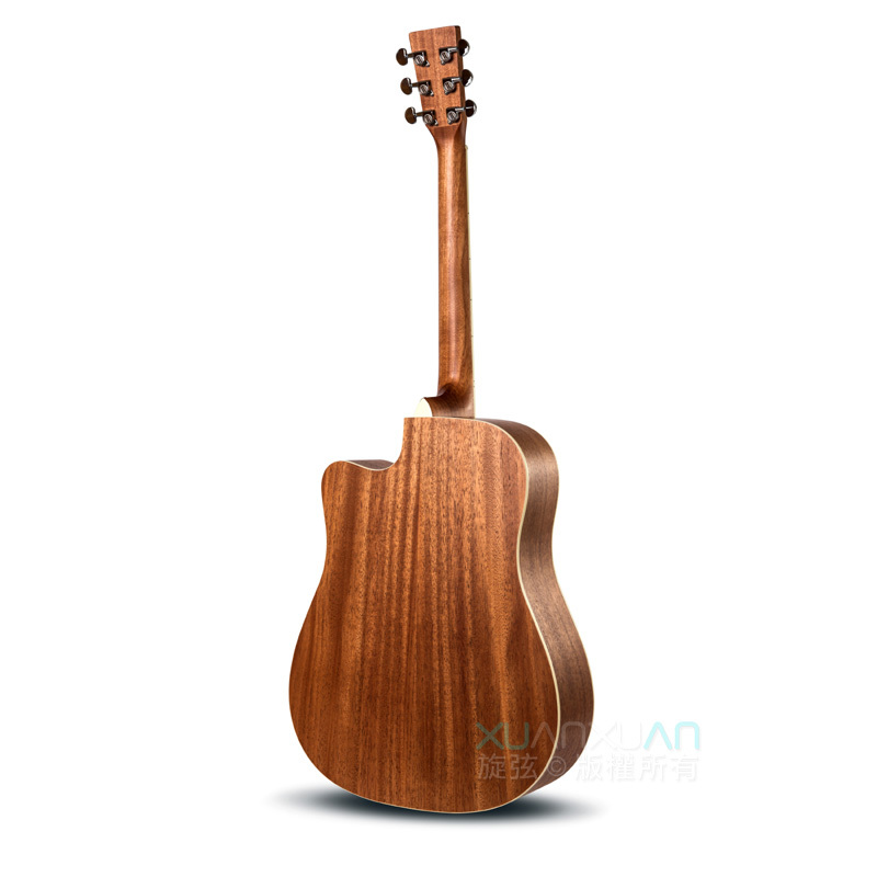 DN-1為常見的Dreadnought桶身,經典的雲杉面板搭配桃花心木側背板,有著極佳的共鳴與低頻,彈唱、刷扣,手感都有著突出的表現。