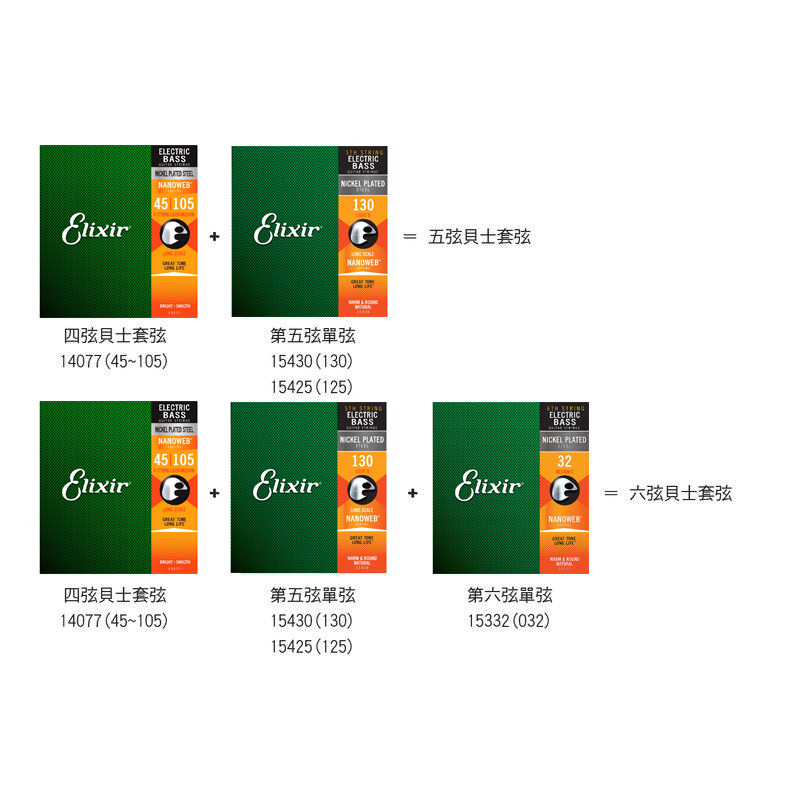 電貝士弦 美國Elixir 第五弦 單弦 NANOWEB 15430(130)、15425(125)
