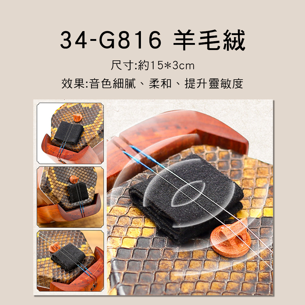 34-G 二胡濾音墊 澳洲羊毛/天然麂皮/複合奈米/古風雲紋 止音墊 二胡音墊