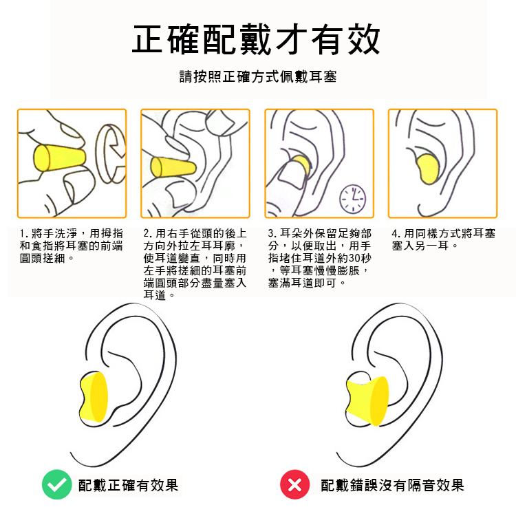 拋棄式耳塞,不可水洗,表面上沾黏灰塵或髒汙,可用乾淨的紙巾擦拭