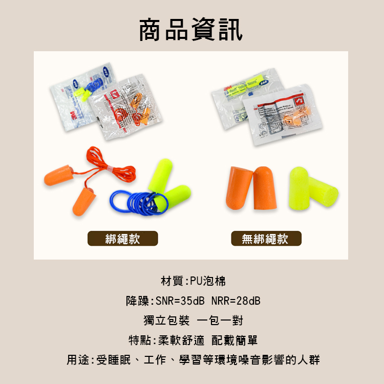 3M 子彈型 隔音耳塞 降躁耳塞 綁繩/無綁繩 兩款售 3M-1100/3M-1100-S