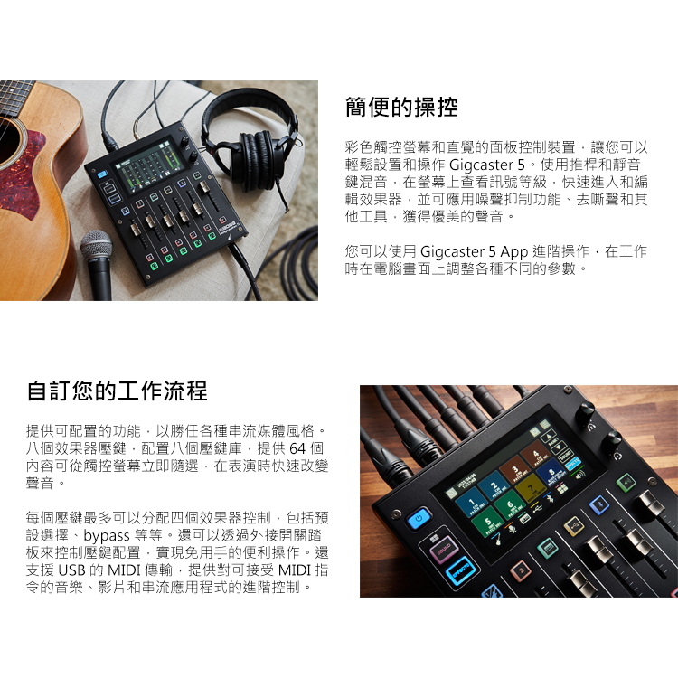 • 專屬 Gigcaster 5 App 可進行參數編輯、備份,和音訊檔轉換