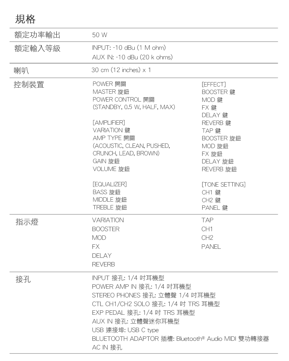 ‧舞台級 50 瓦綜合音箱,搭載特製的 12 吋喇叭