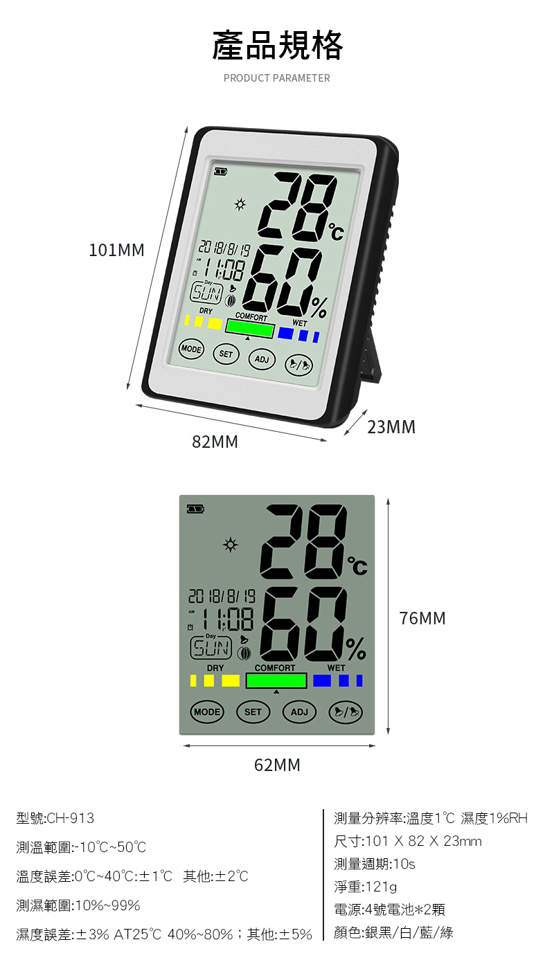 CH-913 多功能電子溫度計 大螢幕溼度計 溫濕度計 室內溫度計 家用濕度計 濕度測量 溫度