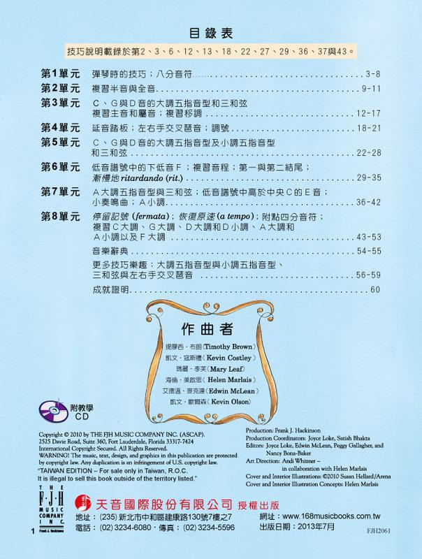 本書中的新技巧有:大調和小調音型與三和弦,兩手之間的平衡,以及踏板的運用。