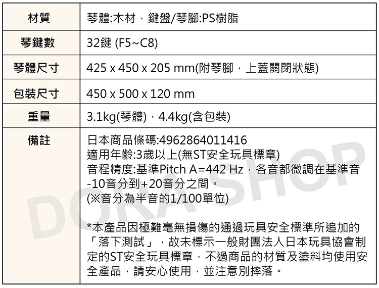 KAWAI 32鍵 迷你鋼琴 玩具鋼琴 1141 TOY PIANO 日本製