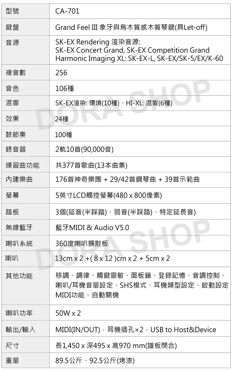 - 烏木與象牙質感鍵盤,(具Let-off、砝碼裝置、三感應器)