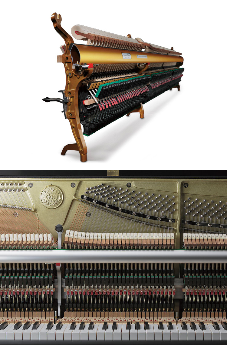 在K系列直立式鋼琴上融入KAWAI平台鋼琴上的鍵盤設計理念。較長的琴鍵使演奏更加輕鬆,並且從演奏表面的前部到後部提供了更均勻的響應。給彈琴者帶來更好的控制及更省力的力量。