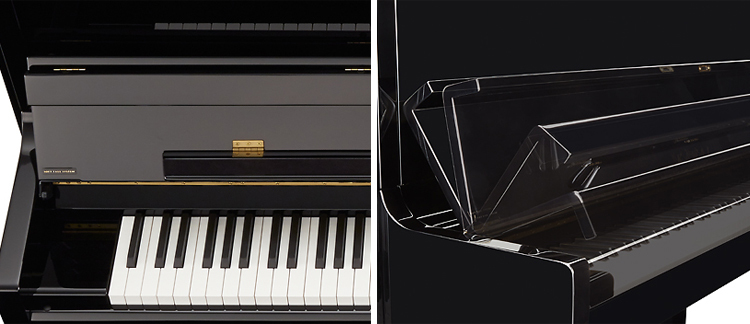 K系列直立式鋼琴全機種皆搭載鍵盤蓋緩降裝置。