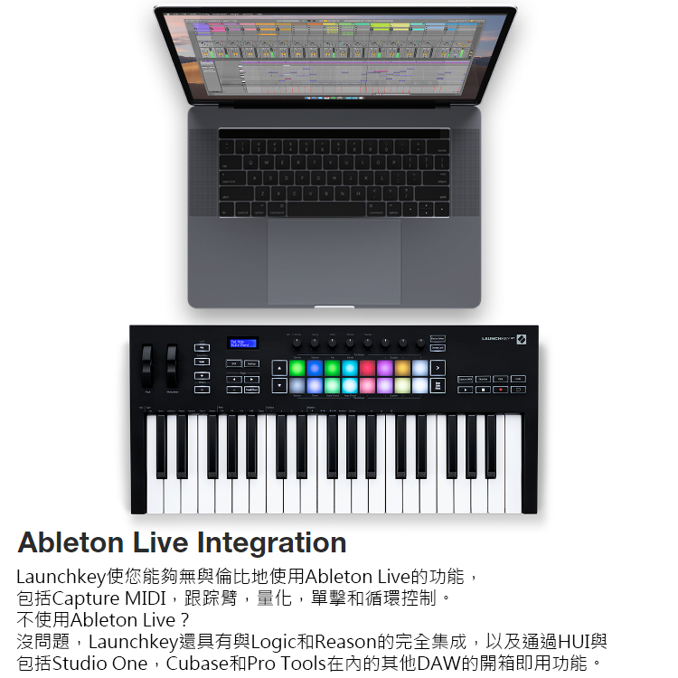 通過HUI與Logic和Reason完全集成,以及與其他DAW的開箱即用功能,包括Studio One,Cubase和Pro Tools。
