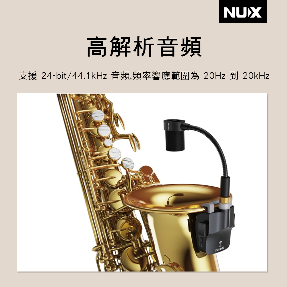‧無線傳輸:2.4GHz 數位無線訊號,讓薩克斯風演奏者能擺脫傳輸線的限制。