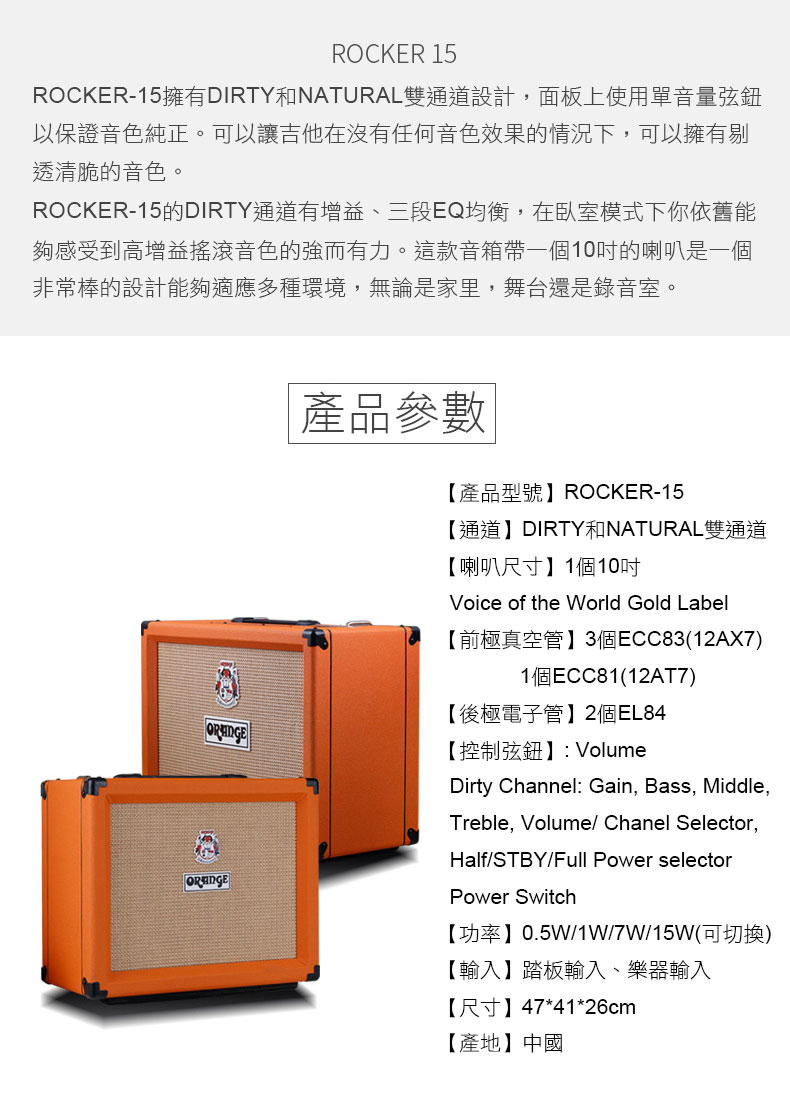 ORANGE ROCKER-15 Combo 電子真空管音箱 ROCKER 15 吉他音箱