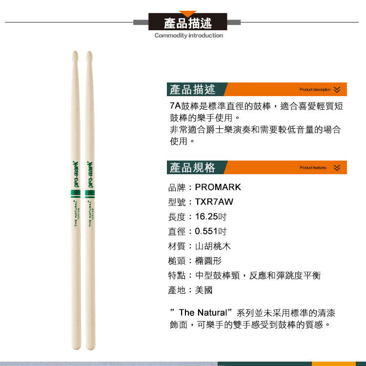 PROMARK TXR7AW 7A鼓棒 鼓棒 胡桃木 7A 消光