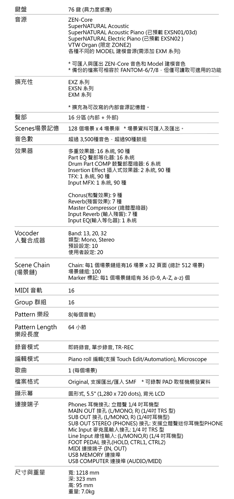 配備76鍵合成器鍵盤,可實現更廣的音域表現