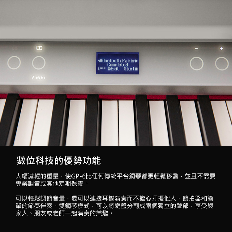 您還可以享受到因應當今生活型態而衍生的一些現代化優點,包括無須調音的低維護操作、內建多種學習工具,使練習變得有趣的Bluetooth®藍牙連接功能等等。