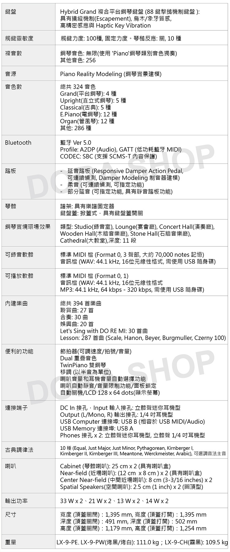 LX-9是LX系列中的旗艦機型。從流暢的鍵盤到配備四音路,八喇叭系統的高大直立式鋼琴琴體,這款豪華的樂器為您的居家帶來高階傳統鋼琴的優雅外觀。