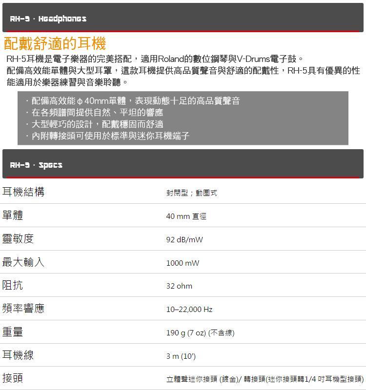 RH-5耳機是電子樂器的完美搭配,適用Roland的數位鋼琴與V-Drums電子鼓。
