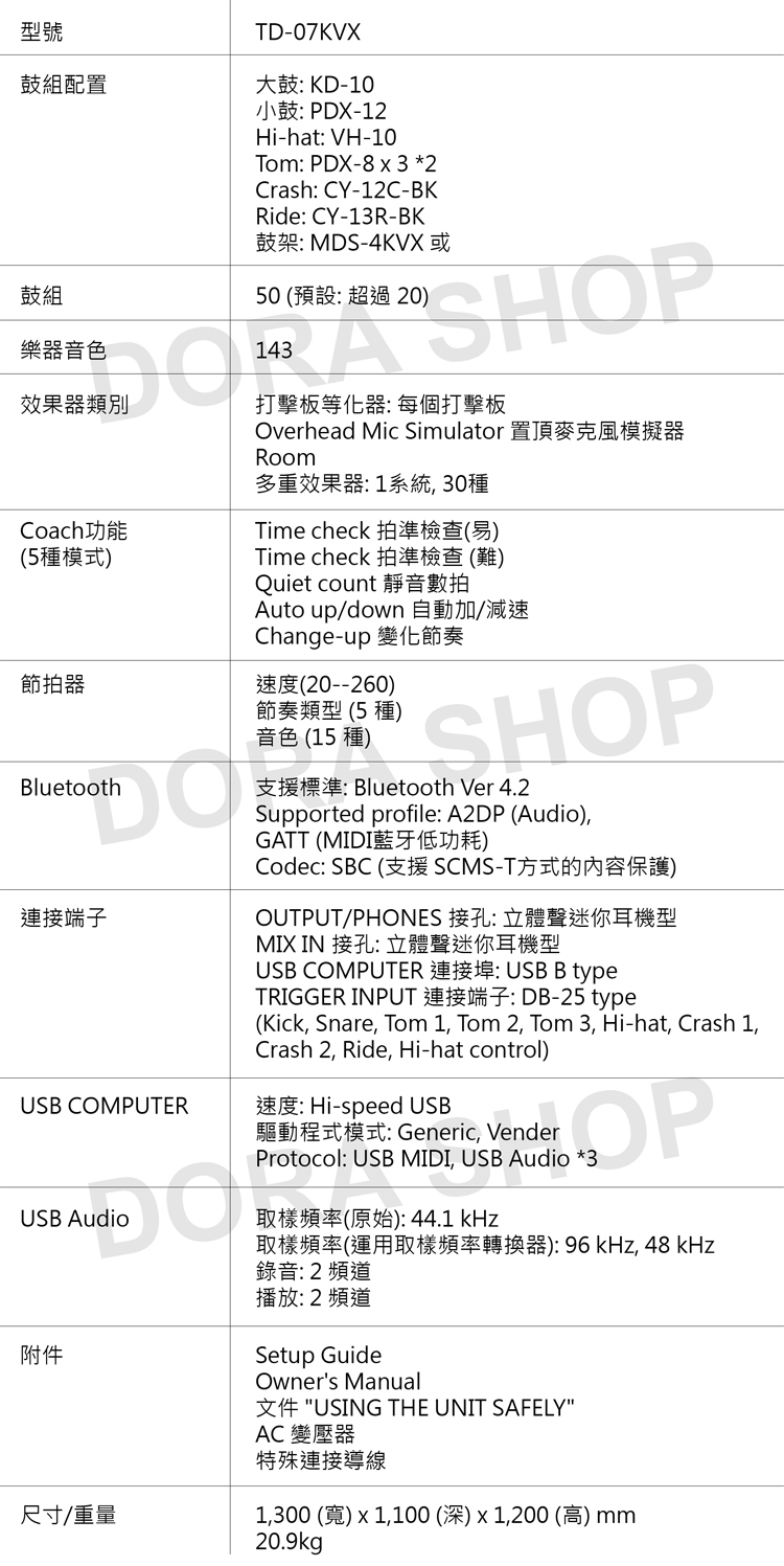 TD-07系列中最頂級機型,配備VH-10浮動式Hi-Hat和歷來最佳的鈸