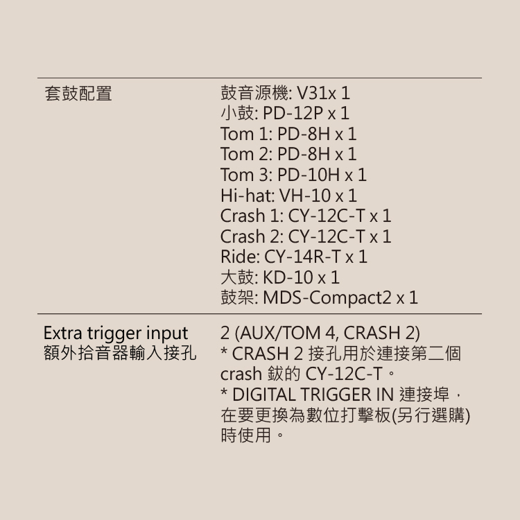 1.鼓音源機: V31 x 1
