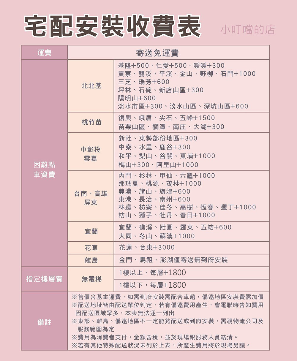 🏷️ 運費:提供台灣本島主要都會區到府安裝 ⚠️ 屏東、台東、花蓮、宜蘭、基隆、新北部分地區,車資費皆另議