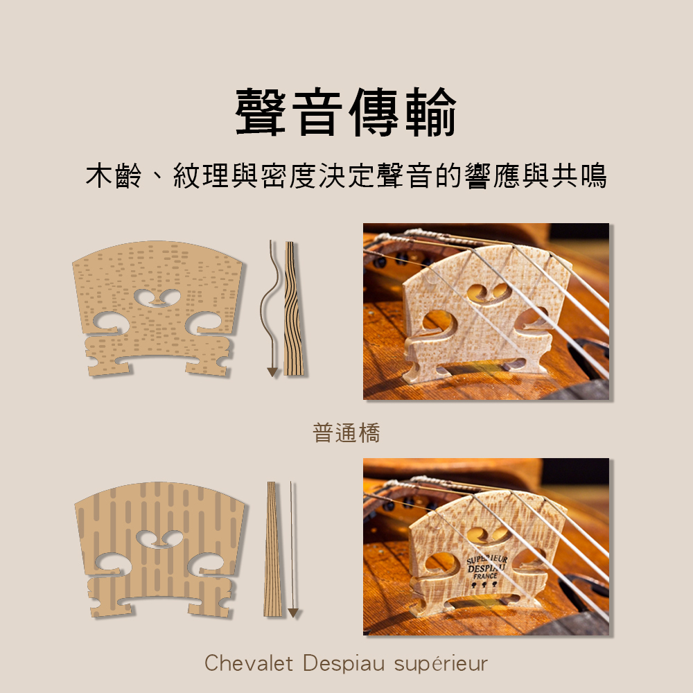 琴橋必須經由專業調整,不論琴橋等級,需配合琴身修整安裝」—琴橋不是直接放上就用。