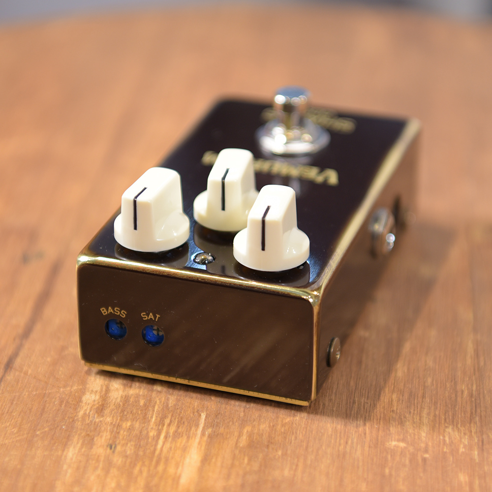 控制項:音量(Level)、增益(Gain)、音色(Tone),以及兩個微調旋鈕:低頻(Bass)和飽和度(Saturation),可進一步調整音色細節。
