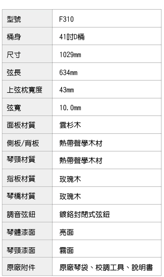 F310提供與其他Yamaha吉他一樣的品質、設計與音色,價格卻相當實惠 。