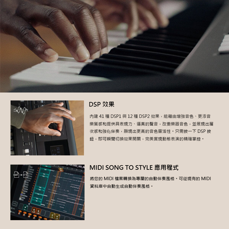 內建豐富的表現力音色與直覺化控制功能,讓您的演奏與創作更顯輕鬆自如。