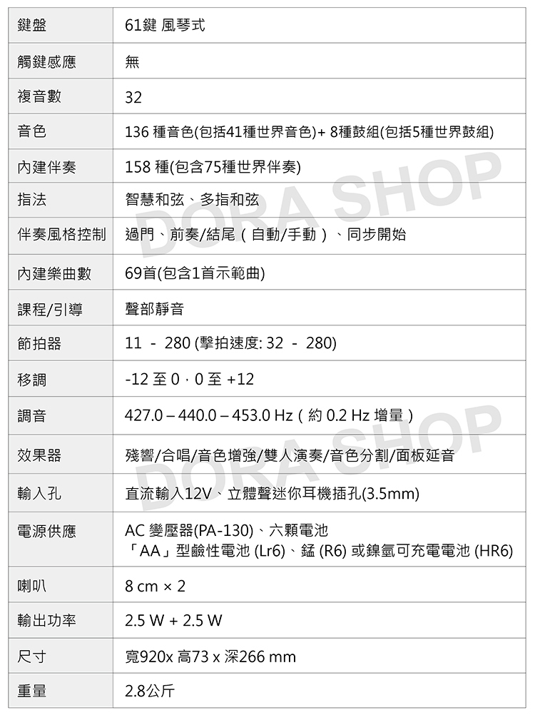 ● 158 種自動伴奏(包括 75 種世界伴奏)