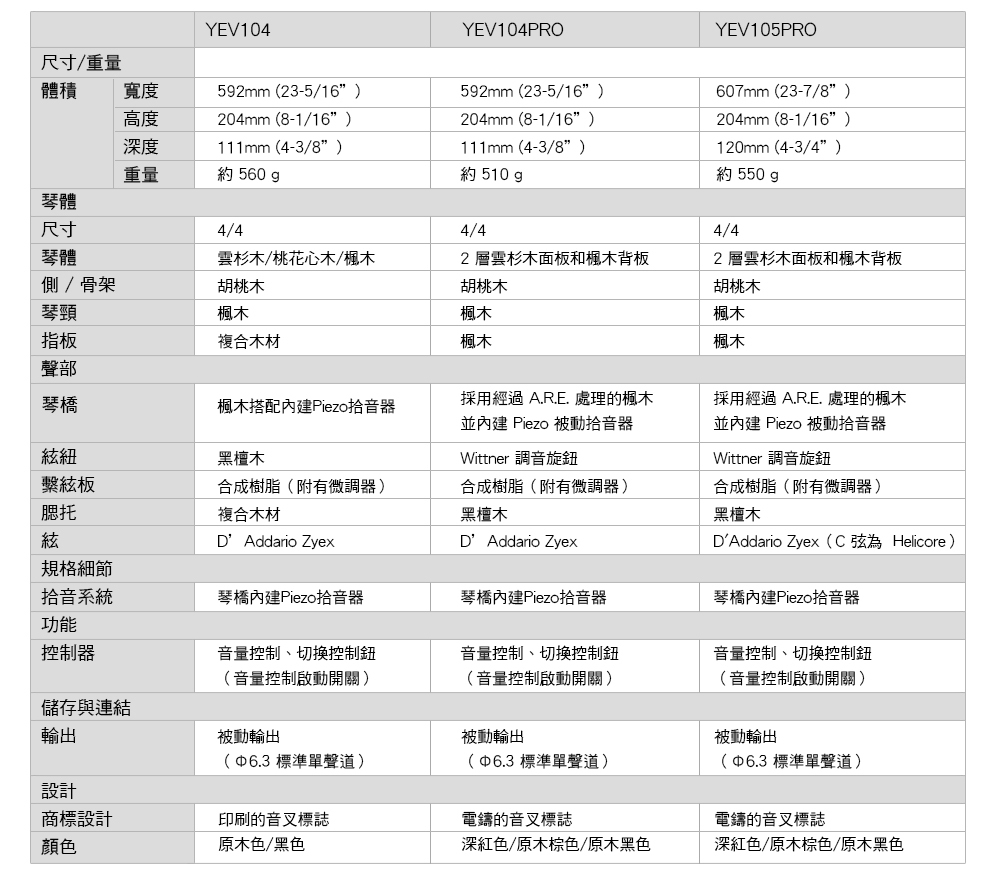 型號:YEV104PRO(四弦)/YEV105PRO(五弦)
