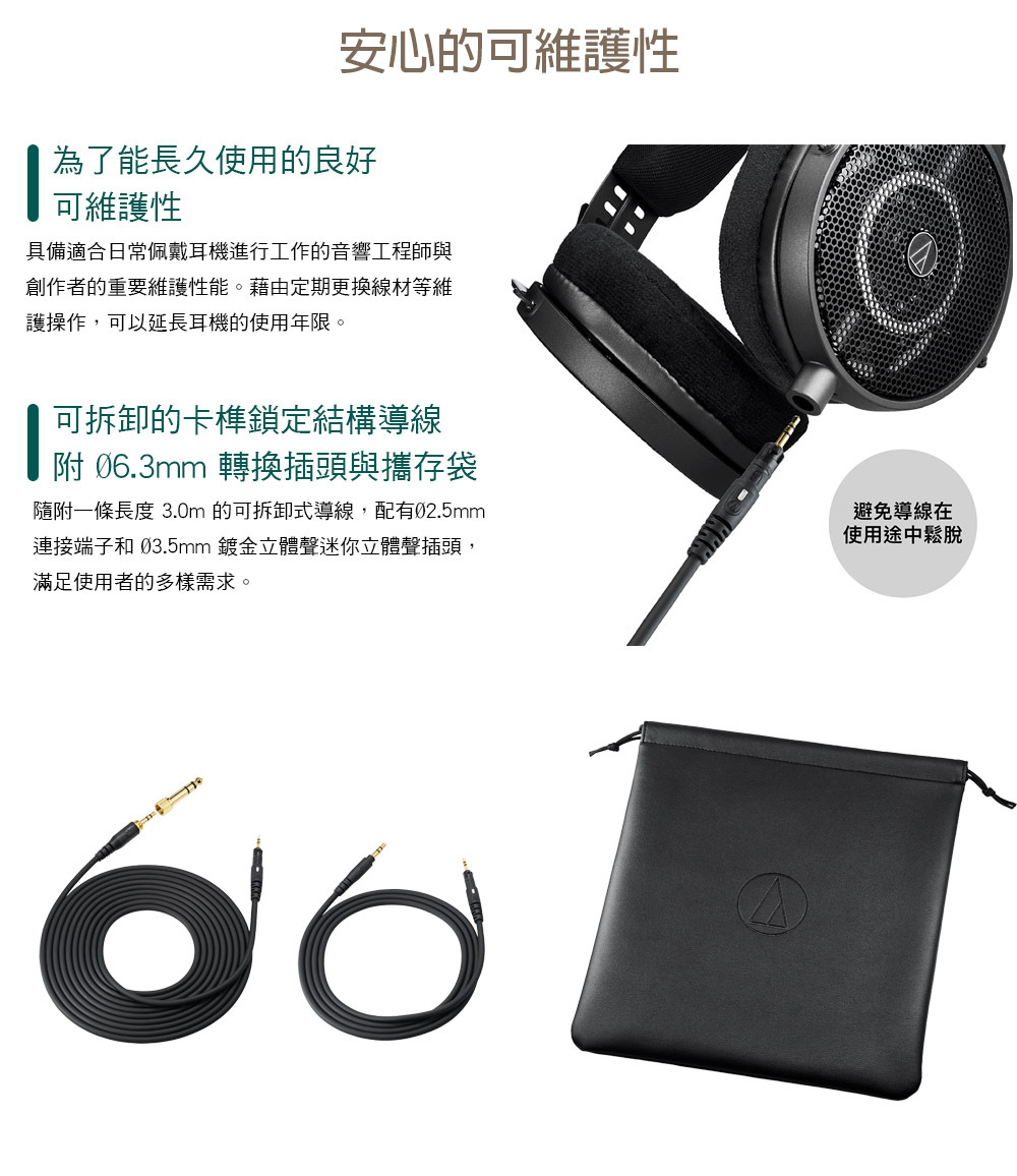 配有Ø2.5mm 連接端子和 Ø3.5mm 鍍金立體聲迷你立體聲插頭