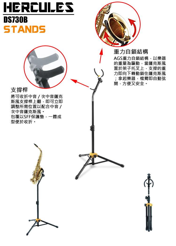 加高型薩克斯風架 DS730B 海克力斯 HERCULES 立奏用架 Auto Grip