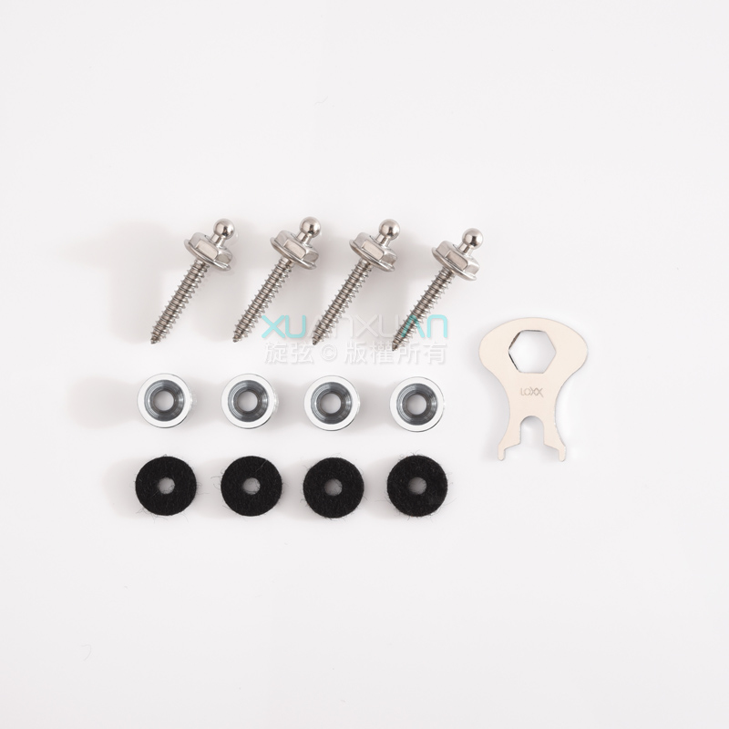 配件:Loxx不銹鋼螺絲(22mm)*4, 纖絨毛氈*4, 背帶套環*4, Loxx工具*1