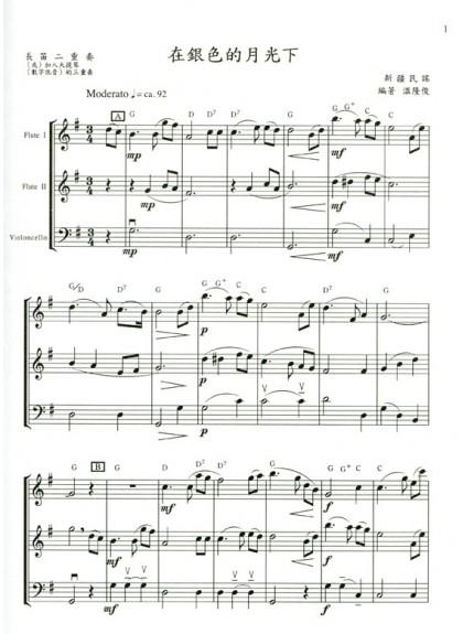 長笛譜 優美動人的中國民謠【1】長笛二重奏 三重奏 (F31)