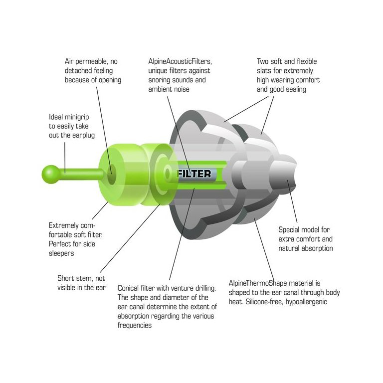 由荷蘭設計,世界級的產品。Alpine 在全球 50 個國家/地區向代理商、大型零售連鎖店、飯店酒店業,大型活動和線上商店提供產品。 此外,Alpine 的產品在各個國家的測試中均名列前茅。 特別是開發了特殊的 AlpineThermoShape™ 材料和 AlpineAcousticFilters™。AlpineThermoShape™ 材料不含矽(silicon)、不含乳膠(latex)、無添加任何著色劑、不會引起過敏反應、無任何塑化劑。使其耳塞在舒適性和音量衰減性方面無與倫比。 Alpine 所有的產品都是在荷蘭構思、設計和生產。