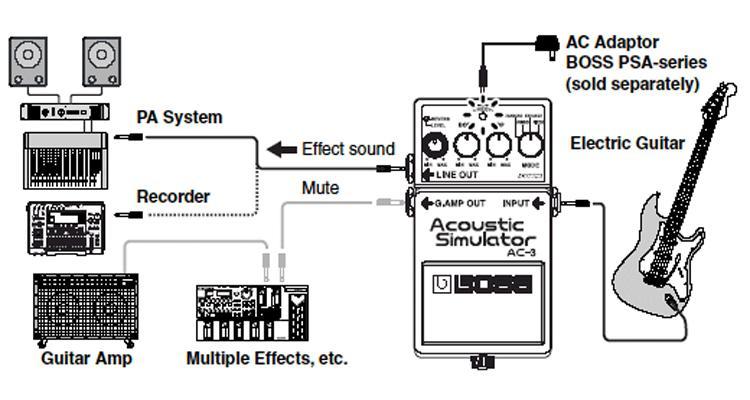 具有兩組輸出端子,讓您可以從AC-3接到標準的吉他音箱,或是連接像是PA、錄音座類的直接輸入器材。