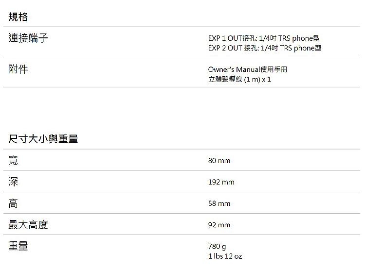 • 適用單踏板效果器、多重效果器、鍵盤、MIDI控制器等器材所配備的¼吋TRS expression輸入端子